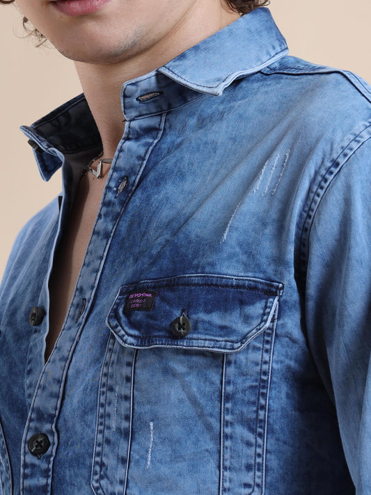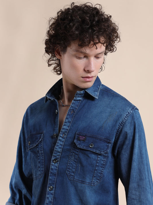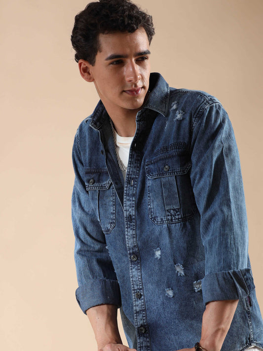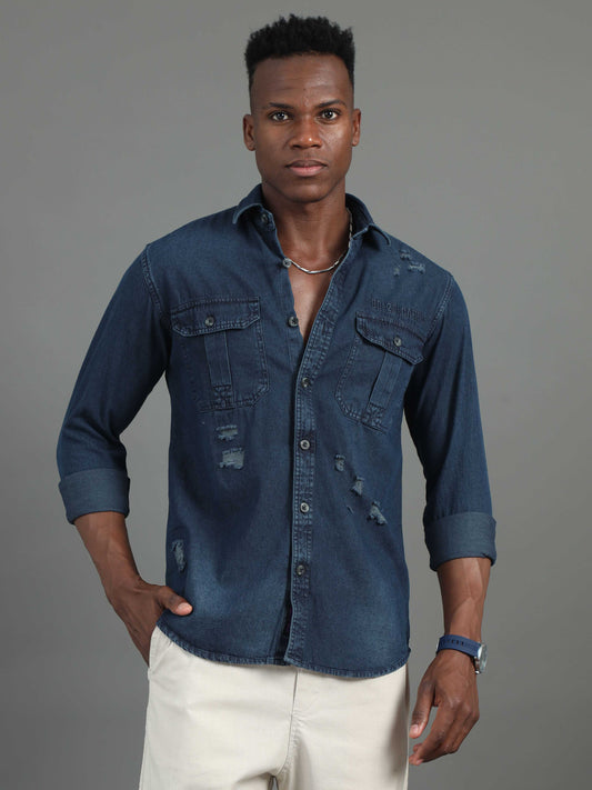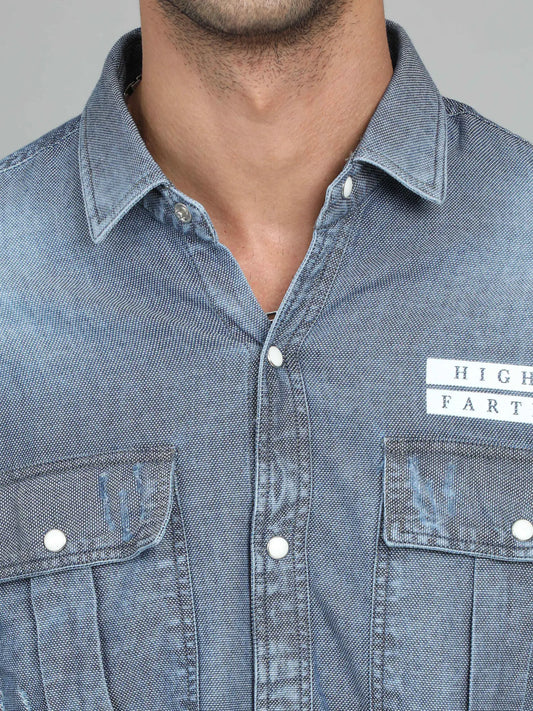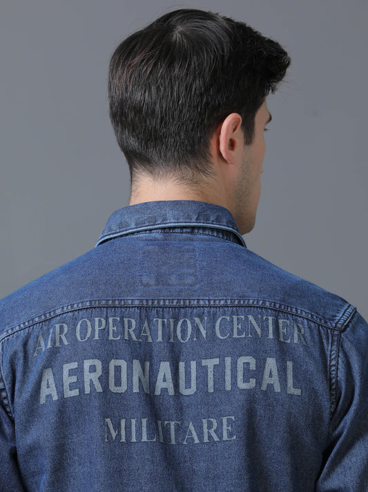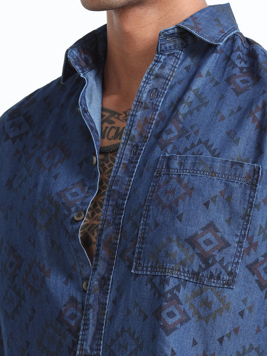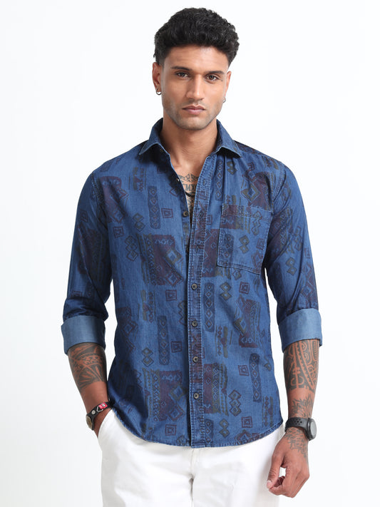 Men's Denim Dark Printed Shirt