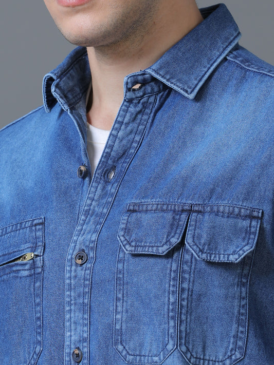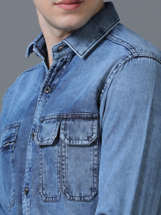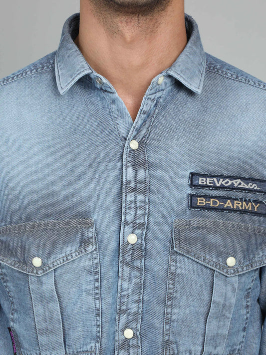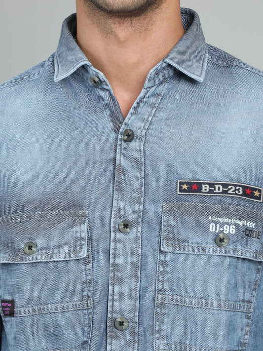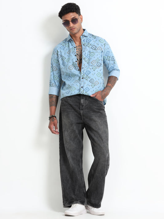 Men's Denim Printed Shirt