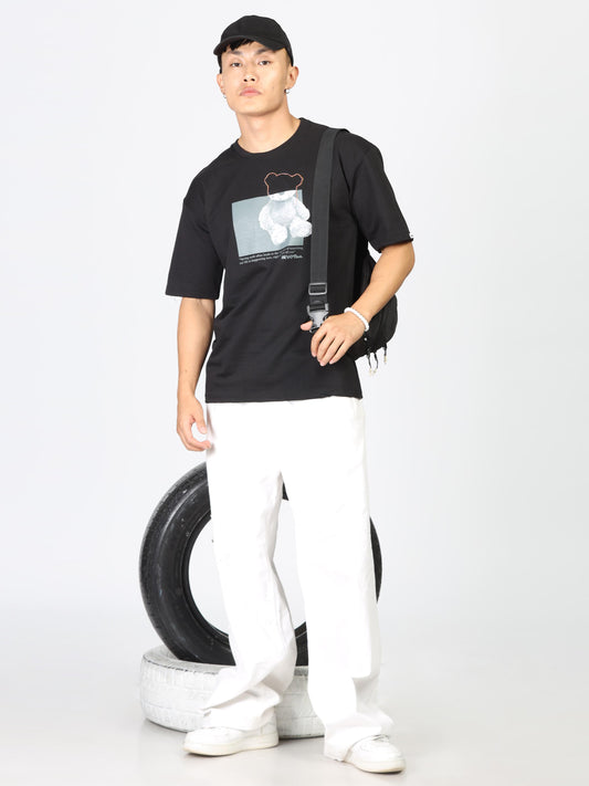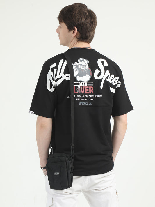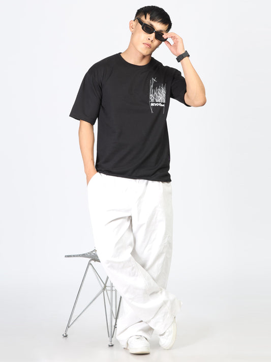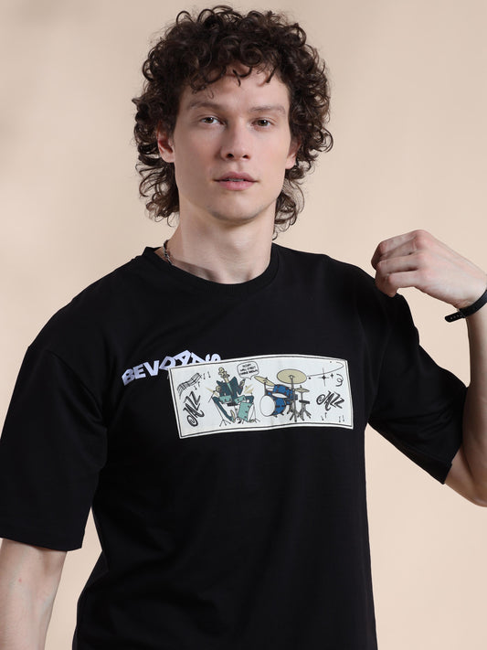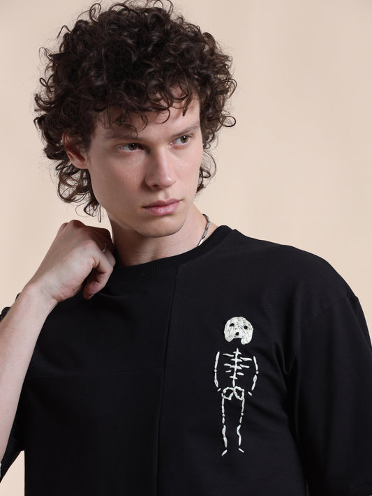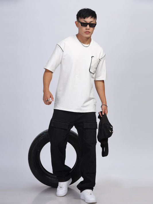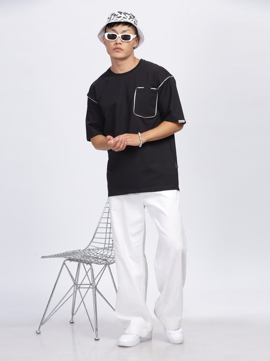 Contrast Stitch Black Drop Shoulder T-Shirt