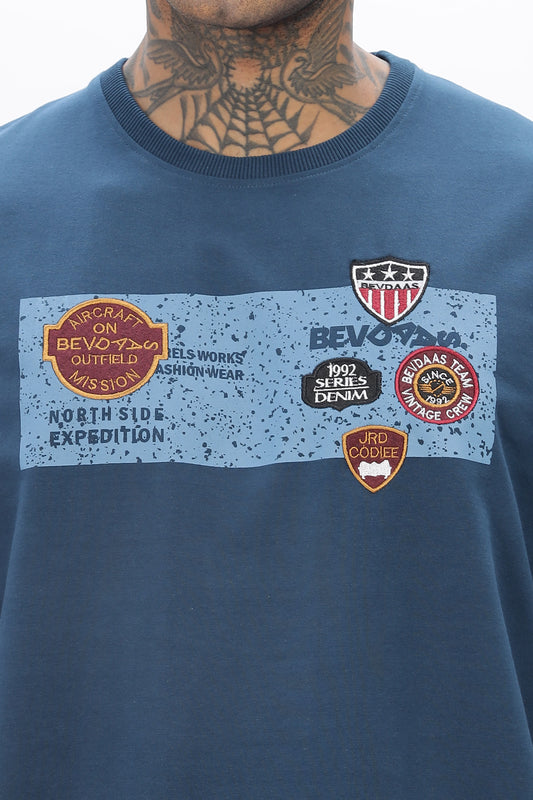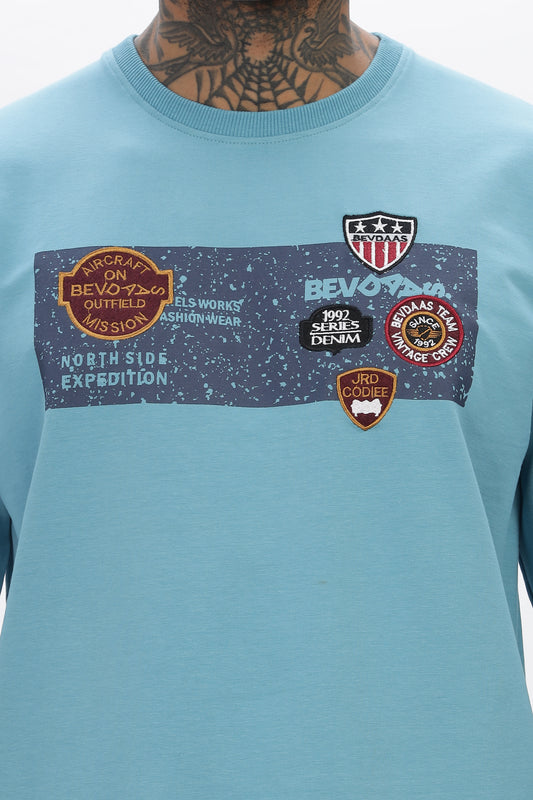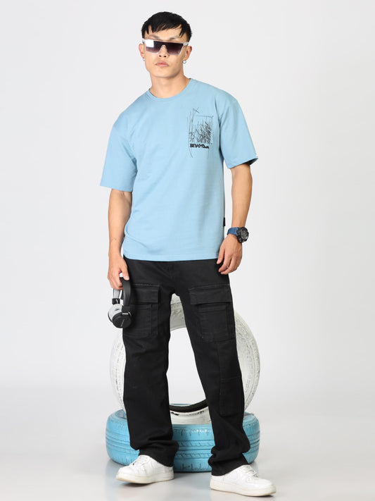 Sky Blue Embroidered Drop Shoulder T-Shirt