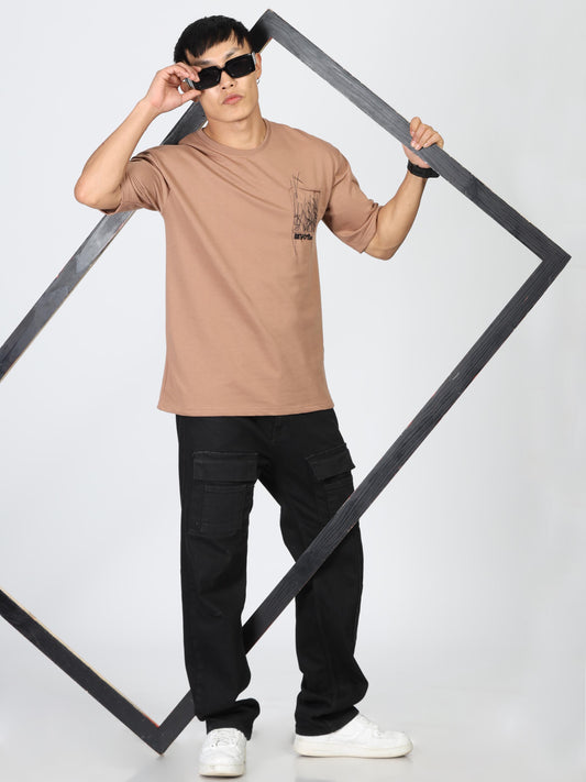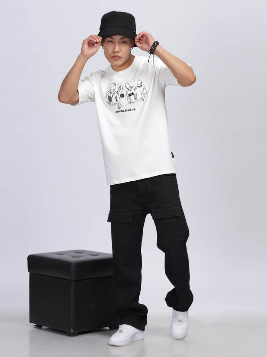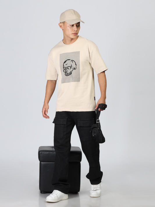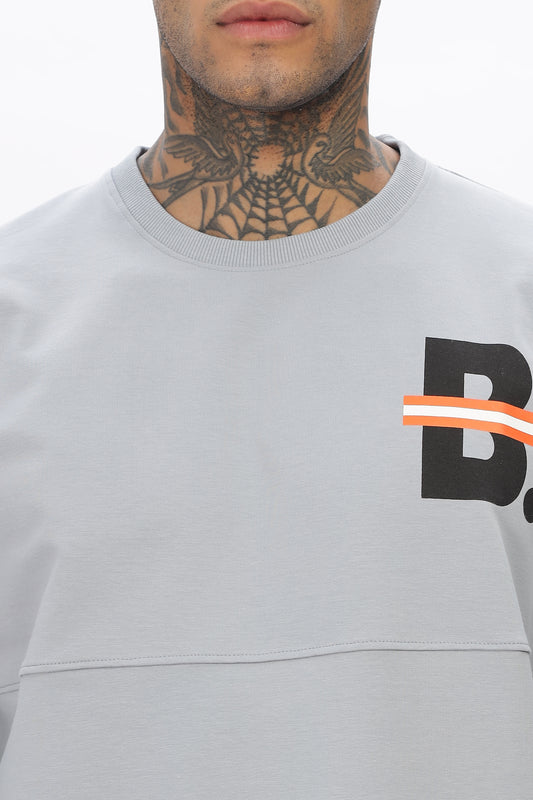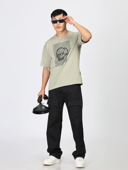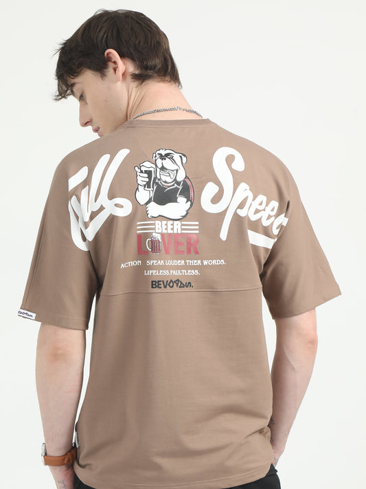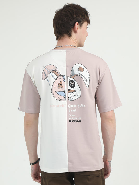 Pastel Grey Printed Drop Shoulder T-Shirt