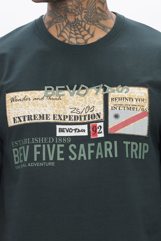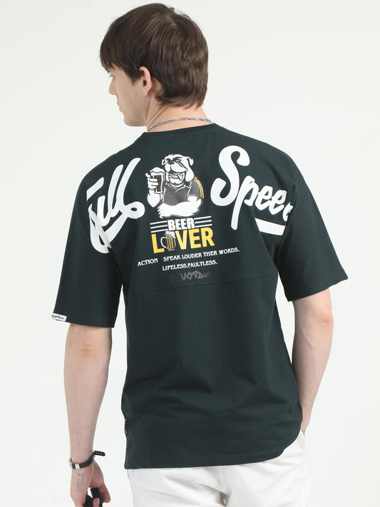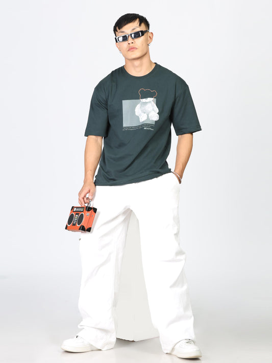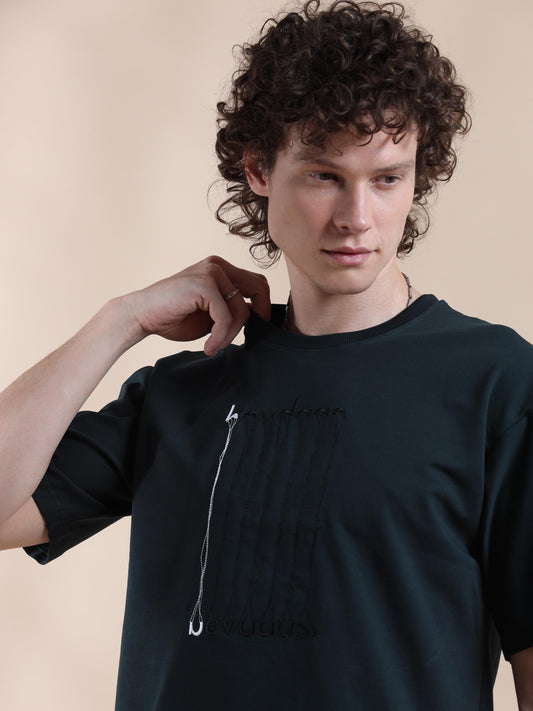 Dark Jungle Green Embroidered Drop Shoulder T-Shirt
