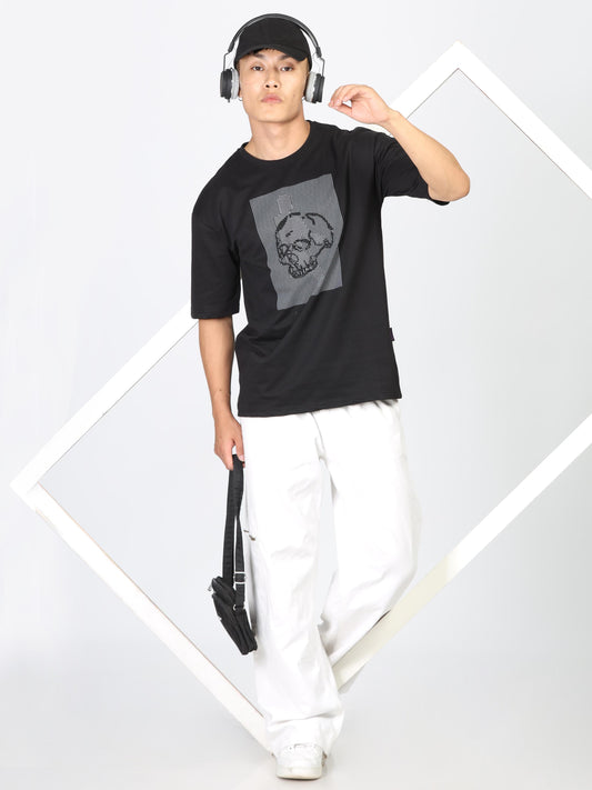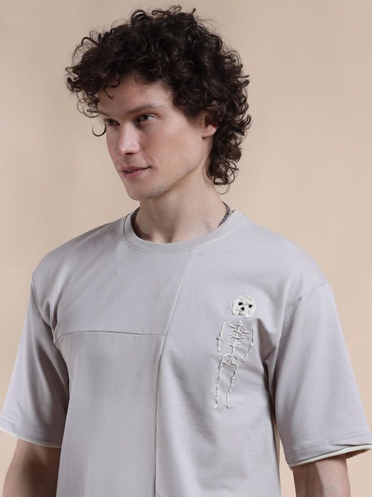 Charcoal Embroidered Drop Shoulder T-Shirt