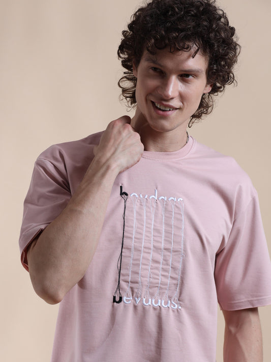 Rose Pink Embroidered Drop Shoulder T-Shirt