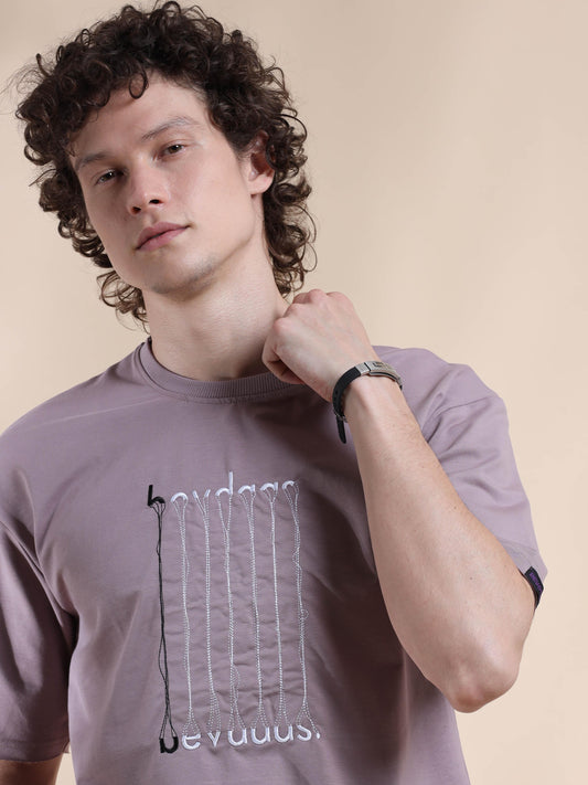 Light Purple Embroidered Drop Shoulder T-Shirt