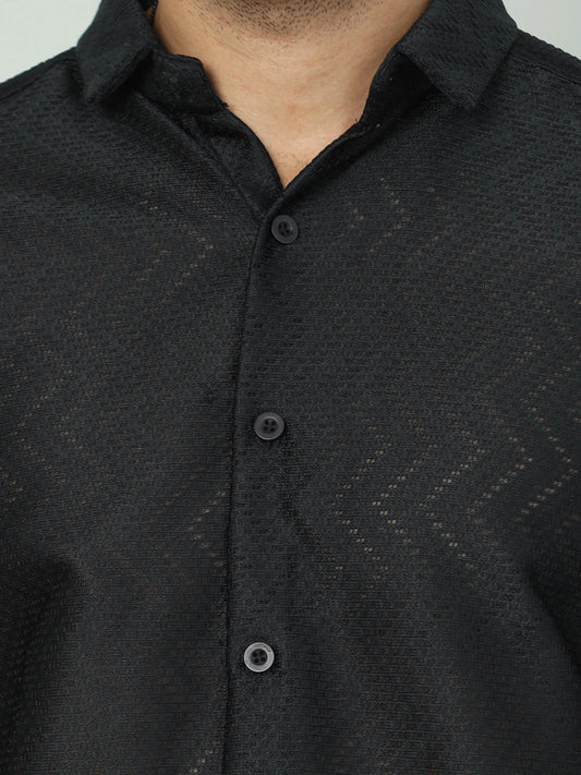 Classic Black Jaquard Drop-Shoulder Shirt