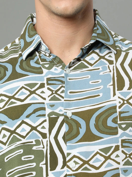 Forest Serenity: Men's Green Rayon Shirt