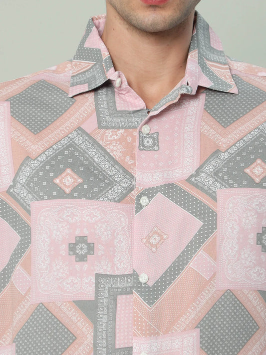 Bubblegum Delight: Men's Pink Rayon Shirt