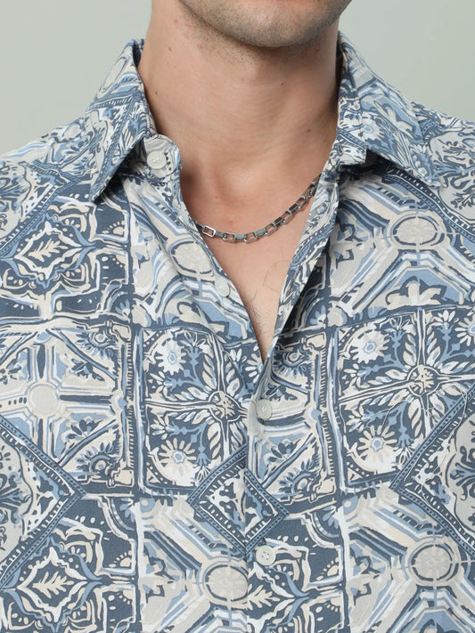 Skyline Charm: Men's Blue Rayon Shirt