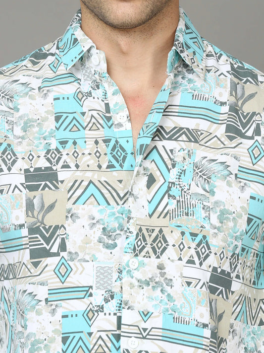 Turquoise Temptation: Men's Blue Rayon Shirt