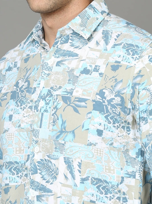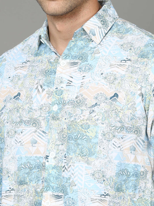 Nature's Delight: Blue Rayon Shirt Inspired by Flora