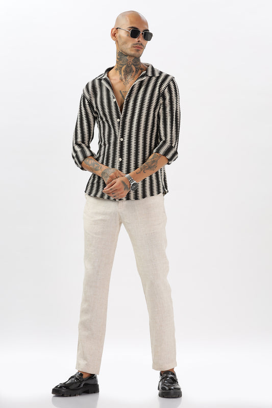 Black Zigzag Crochet Cuban Collar Shirt