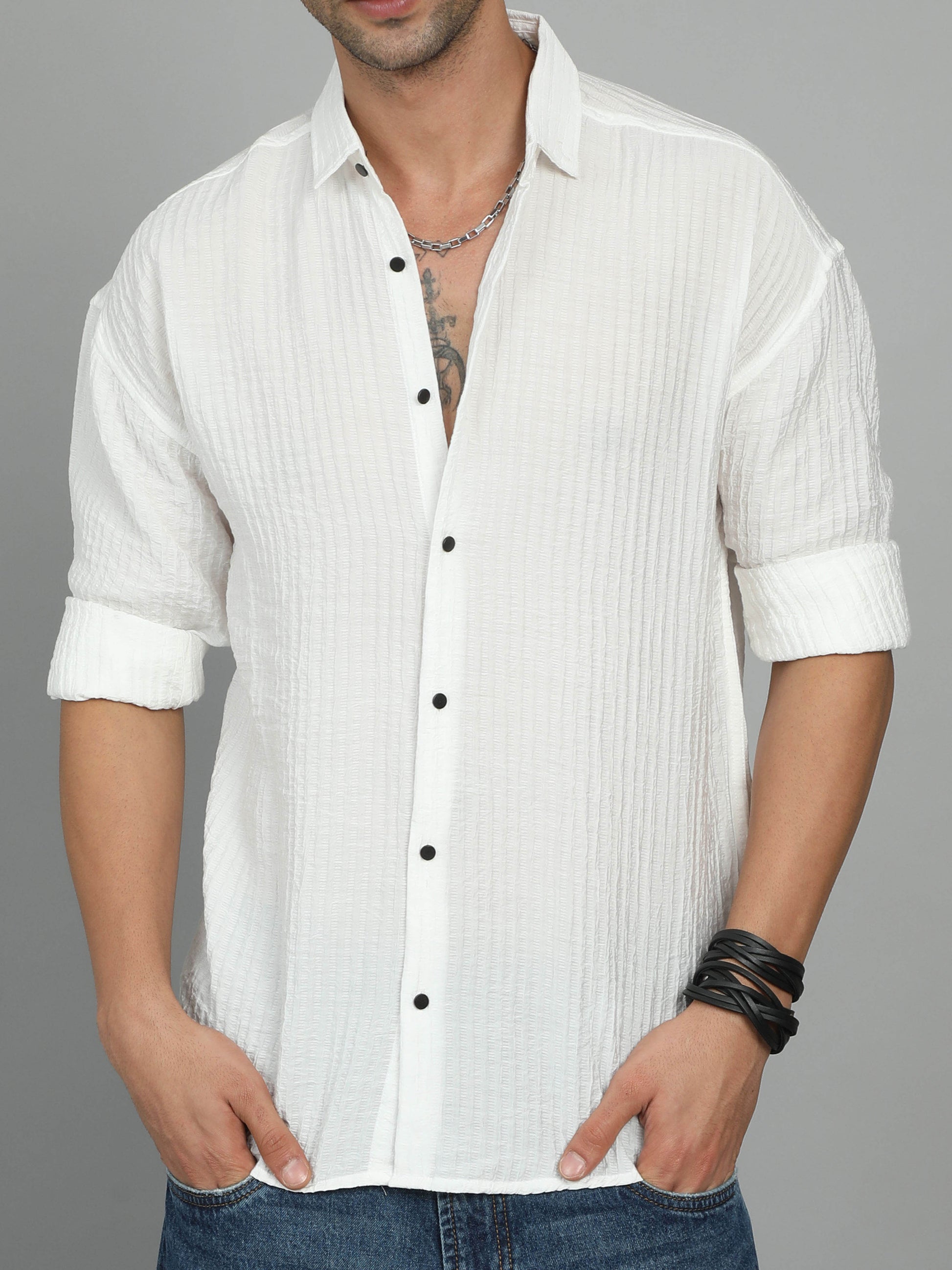 MR.RIGHT WHITE IMPORTED SHOULDER DROP SHIRT